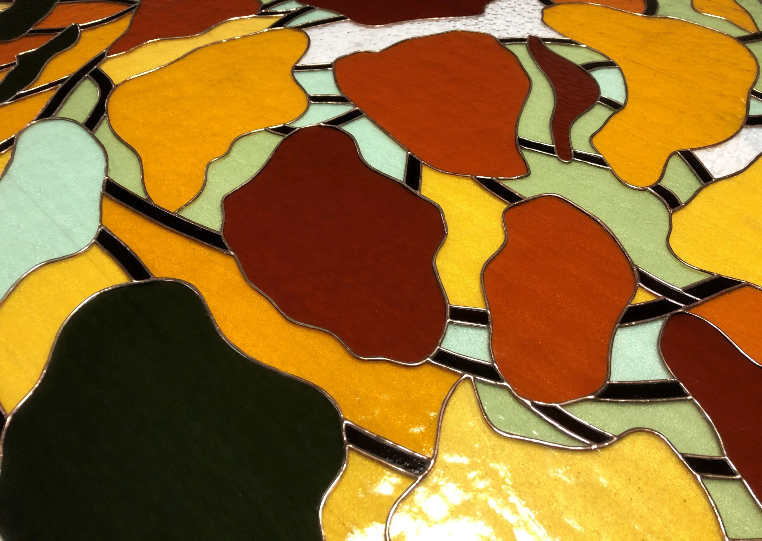 Это коллекция оригинальных витражей Тиффани, изготовленных мной. Они включают в себя произведения под названием «Рыбы», «Венеция», «Сан Джорджо», «Лондон», «Понте Веккио» и многие другие.